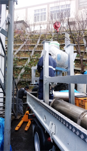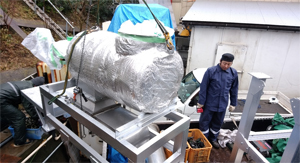 また、定期的なアフターバナーのメインテナンスも、メーカーからの直接的なサービスもお受けいただけます。日々、生産を継続的に行う環境の中、信頼度の高いアフターバーナーは、近隣の皆様へのご迷惑も最低限に出来ます。専用のやぐらの上に載せるタイプです。天井高は、2557ミリ以上が、必要です。