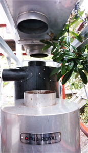 基本的には、焙煎機の近くに設置する場合が多いですが、スペース的な問題で、屋外に設置する事も可能です。その際は、全天候型で、重要なバーナ―部分を風雨から守る防水対策を施した設備が必要です。高温になる為の開口部を設けることも必要となります。それらのご要望に、イデカフェは、一括して対応致します。