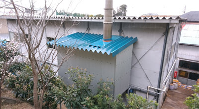 屋外アフターバーナー室の構築から、アフターバーナの搬入設置、そして、サイクロンとのジョイント、更には、外装工事の施工まで、イデカフェは、一貫してお客様のニーズにお応えます。
